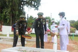 TARAKAN, Mediakaltara.com – Masih dalam rangkaian menyambut HUT TNI Ke – 76,TNI diwilayah Kota Tarakan melaksanakan ziarah rombongan di Taman Makam Pahlawan Dwikora Jl.Kusuma bangsa Kel.Gunung lingkas, Senin (04/10/2021).